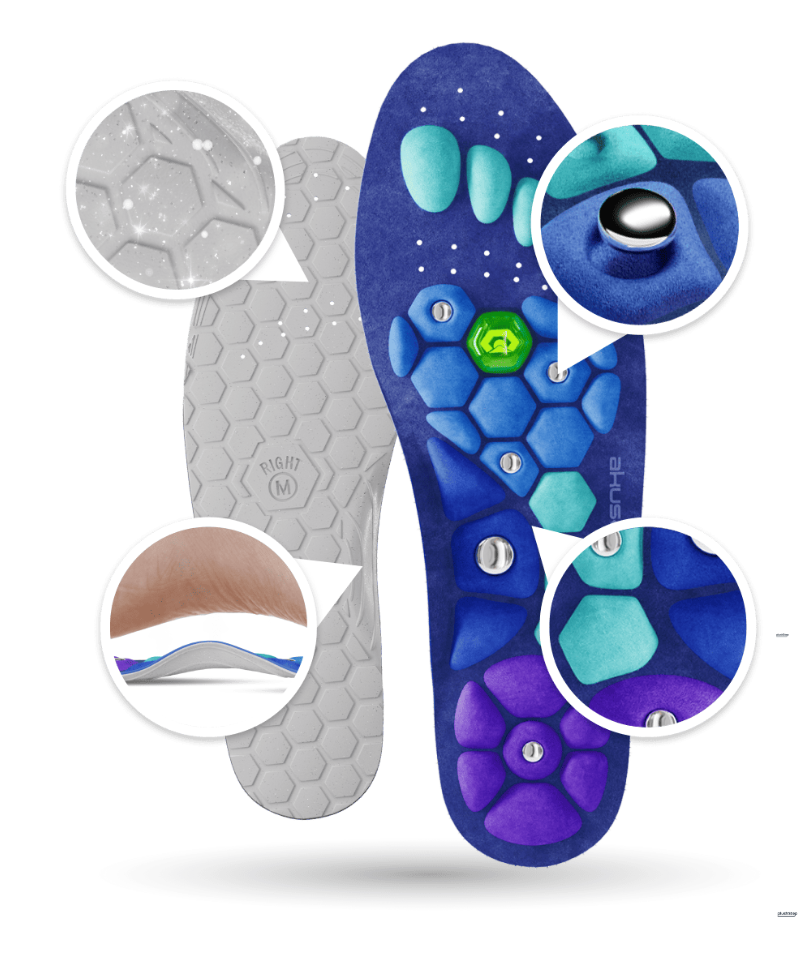 Precision-engineered with 400+ biomechanically mapped acupressure nodes and embedded therapeutic magnets, AcuStride delivers continuous, targeted stimulation to the reflex points your body needs most. No appointments. No medication. No disruption to your daily life.